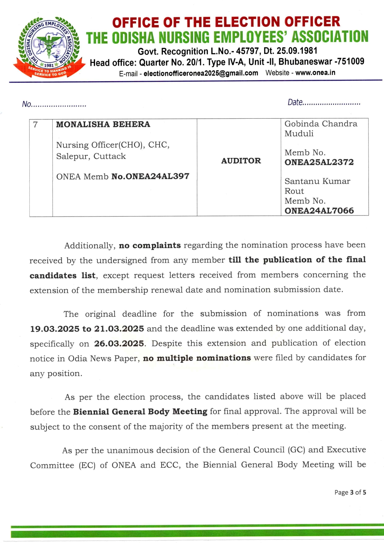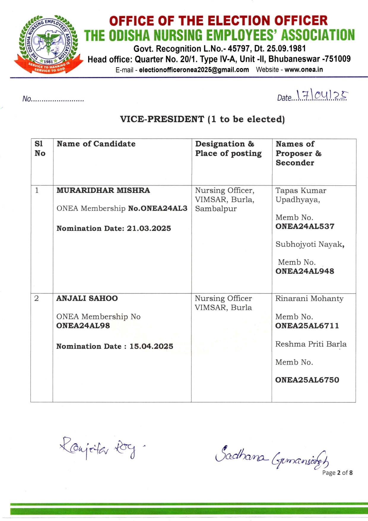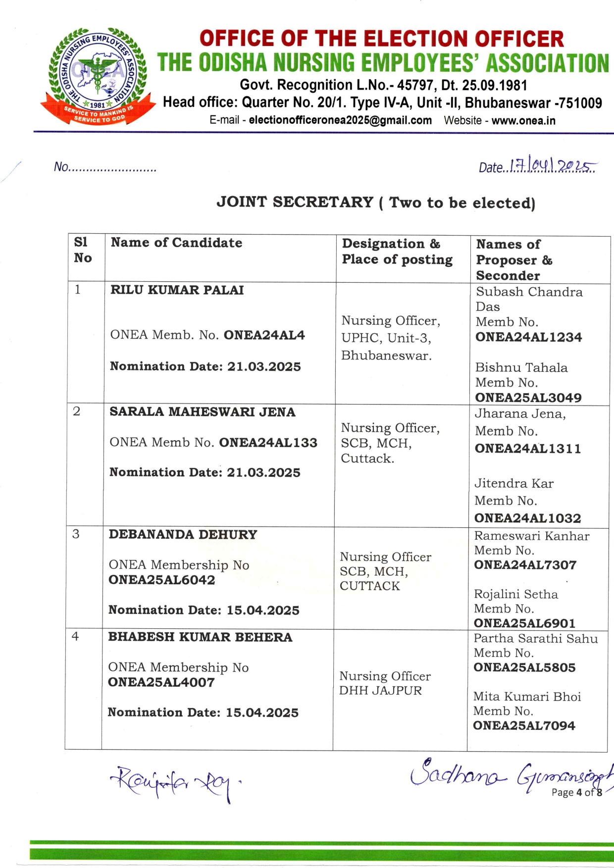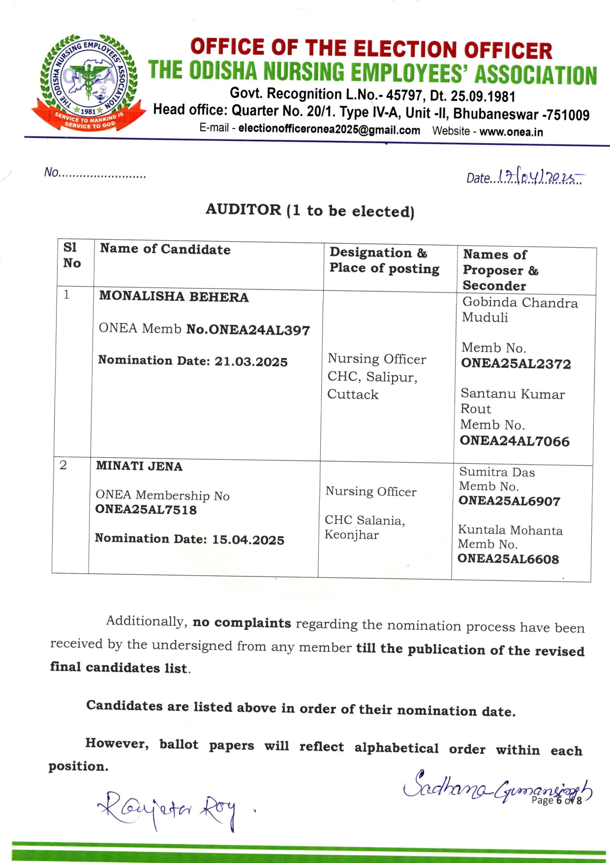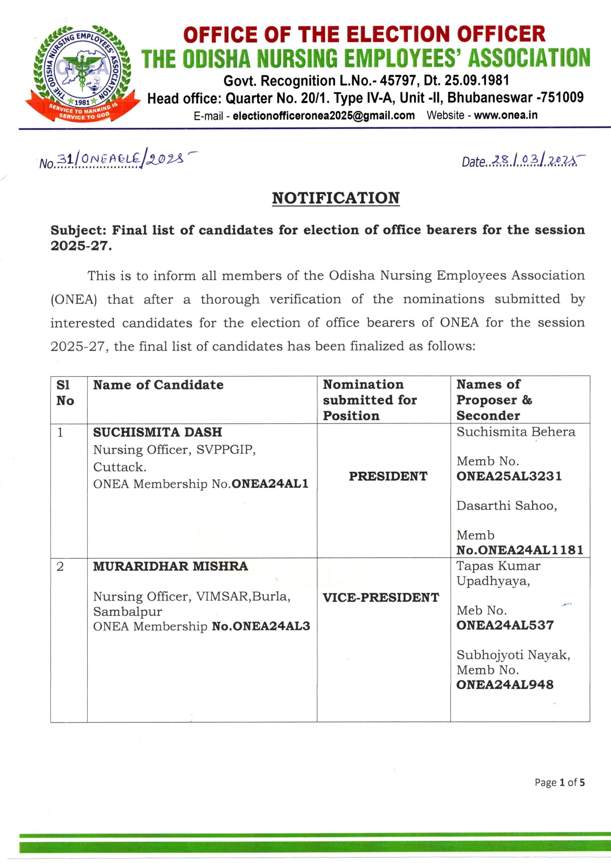 The Odisha Nursing Employees Association (ONEA) is a registered service association of all Nursing Officers, Tutors, Asst. Professors of Nursing Education, Asst. Nursing Superintendents, Deputy Nursing Superintendents, Asso. Prof. of Nursing Education & Nursing Superintendents working in different Govt. Health Care Sectors and nursing educational institutions and it has been recognized by the Government of Odisha vide Home (Assn.) Department Order No.45797, Dated 25th September 1981 <<Read More>>